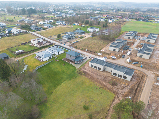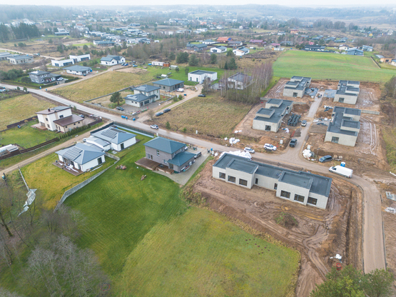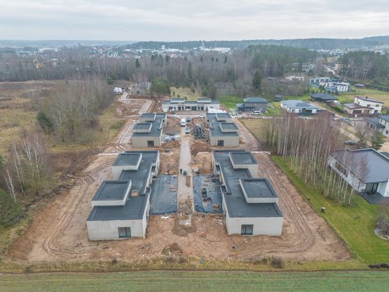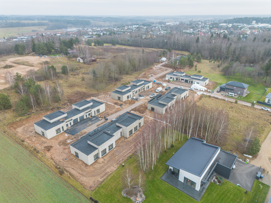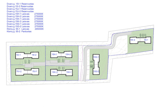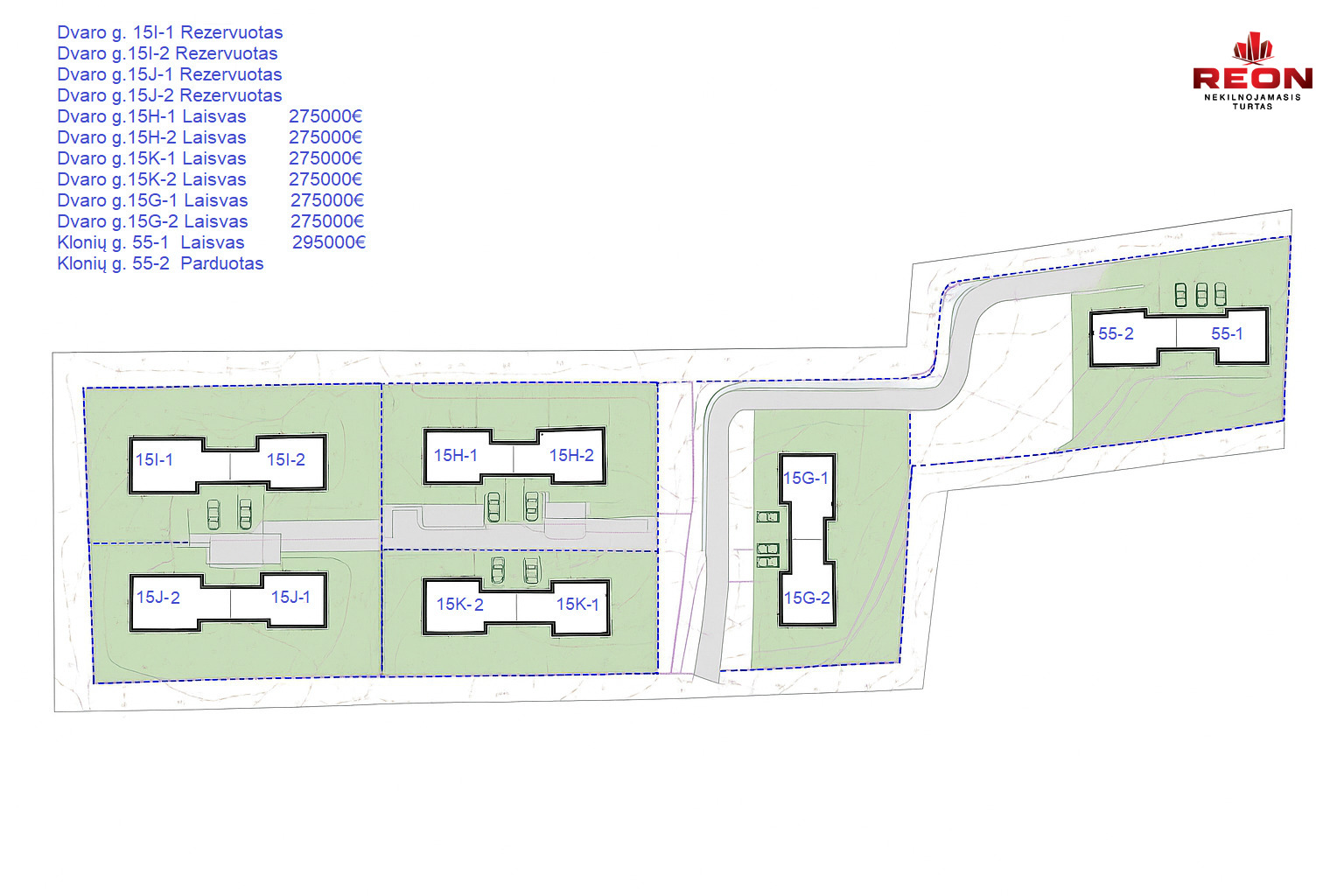 Vilniaus pašonėje, ramioje ir gražioje vietoje, 6 dvibučių namų kvartale, dideliuose 15a sklypuose, parduodami aukštos kokybės, A++ energinio naudingumo klasės, modernios architektūros, vienaukščiai dvibučiai namai. Kvartalo gyventojai asfaltuotomis gatvėmis savo namus galės pasiekti 3 skirtingais keliais – A2 pro Klevinę, A14 pro Didžiąją Riešę arba pro Lindiniškes. Kelios minutės automobiliu iki prekybos centrų ir parduotuvių, šalia vaikų darželis.