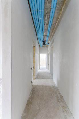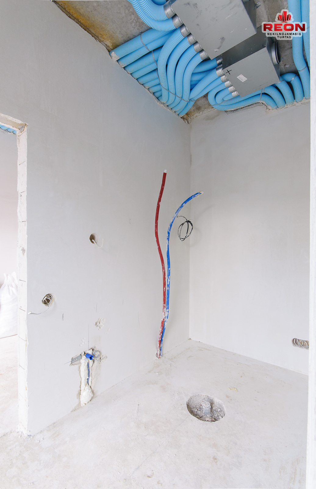 - Išvedžiota rekuperacija. Išvedžiotas grindinis šildymas visose patalpose. Numatomas aeroterminis šildymas oras-vanduo. Vidaus santechnika – įrengiami atvadai santechnikos prietaisams. Nuotekų vamzdynai atvedami iki kiekvieno santechninio prietaiso ir kondicionierių.