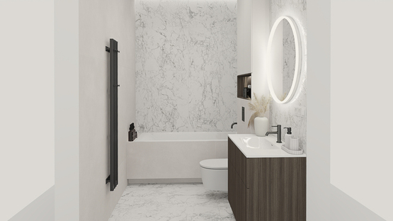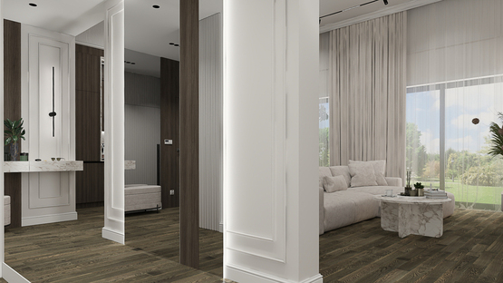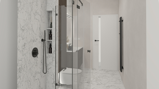 - Išvedžiota rekuperacija. Išvedžiotas grindinis šildymas visose patalpose. Numatomas aeroterminis šildymas oras-vanduo. Vidaus santechnika – įrengiami atvadai santechnikos prietaisams. Nuotekų vamzdynai atvedami iki kiekvieno santechninio prietaiso ir kondicionierių.