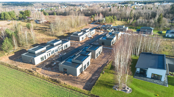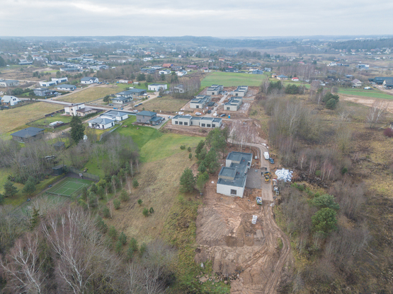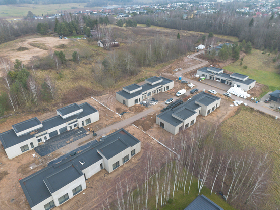 Vilniaus pašonėje(praktiškai D. RIEŠĖJE), ramioje ir gražioje vietoje, dvibučių namų kvartale, dideliuose 15a sklypuose, parduodami aukštos kokybės, A++ energinio naudingumo klasės, modernios architektūros, vienaukščiai namai. Kvartalo gyventojai asfaltuotomis gatvėmis savo namus galės pasiekti 3 skirtingais keliais – A2 pro Klevinę, A14 pro Didžiąją Riešę arba pro Lindiniškes. Kelios minutės automobiliu iki prekybos centrų ir parduotuvių, šalia vaikų darželis.