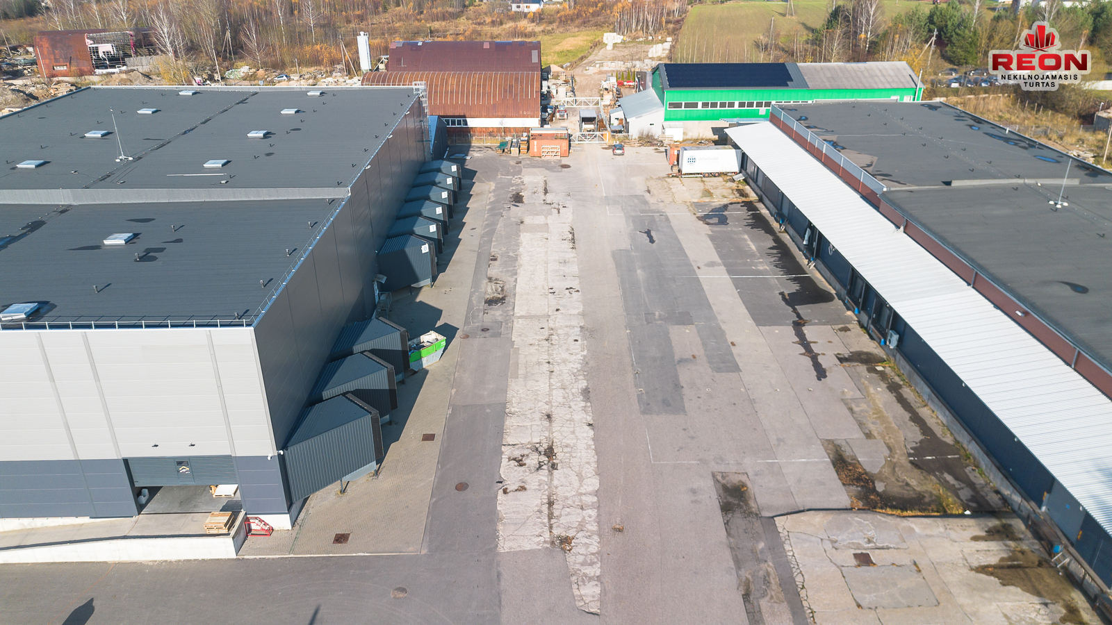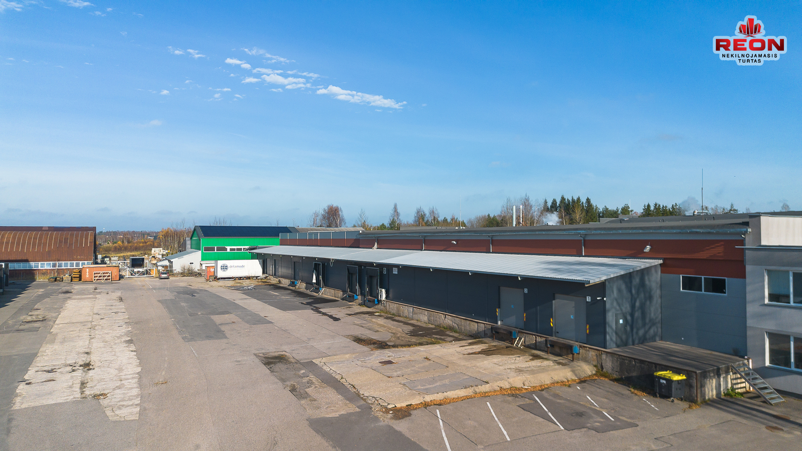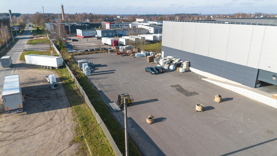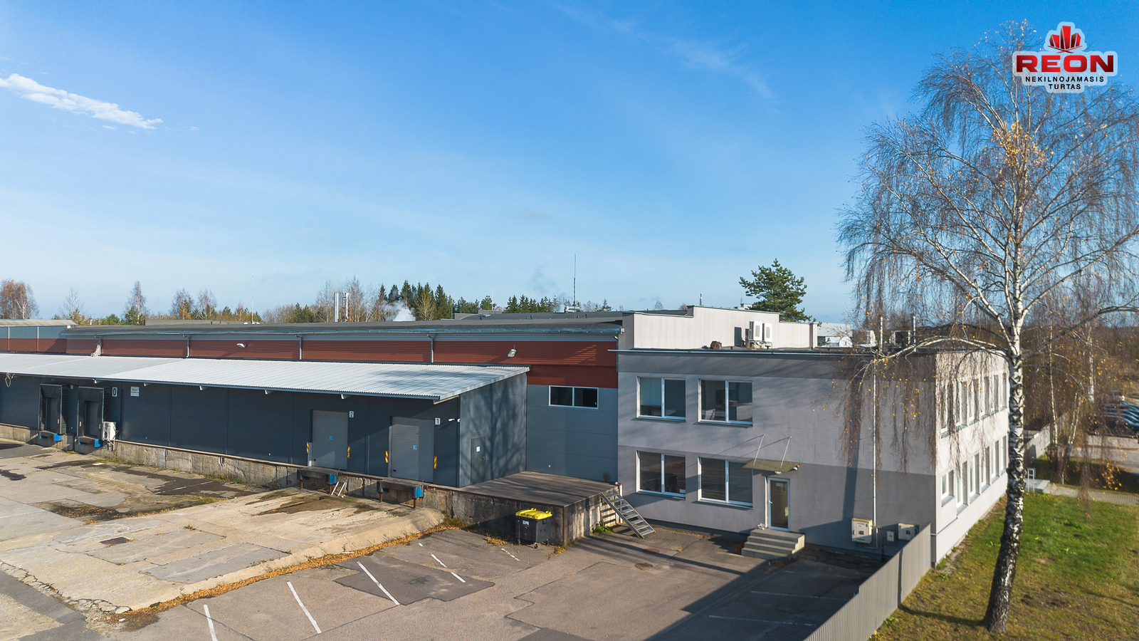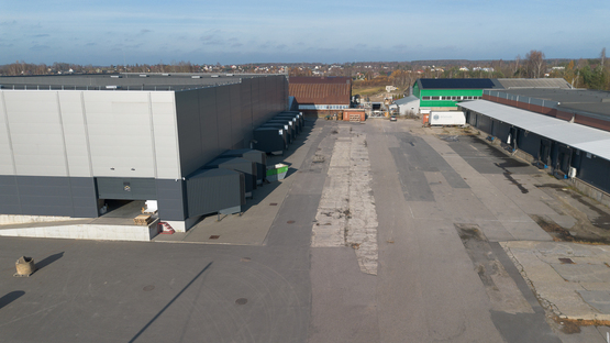 -- Šildomas sandėlis su dengta uždara rampa, bendras plotas – 3288,29 m², uždaros rampos plotas – 1000 m², aukštis – 6,40 m, įrengta vėsinimo/šaldymo patalpa, yra du įvažiavimai, vieta konteineriams ir transportui.