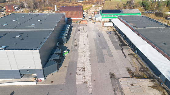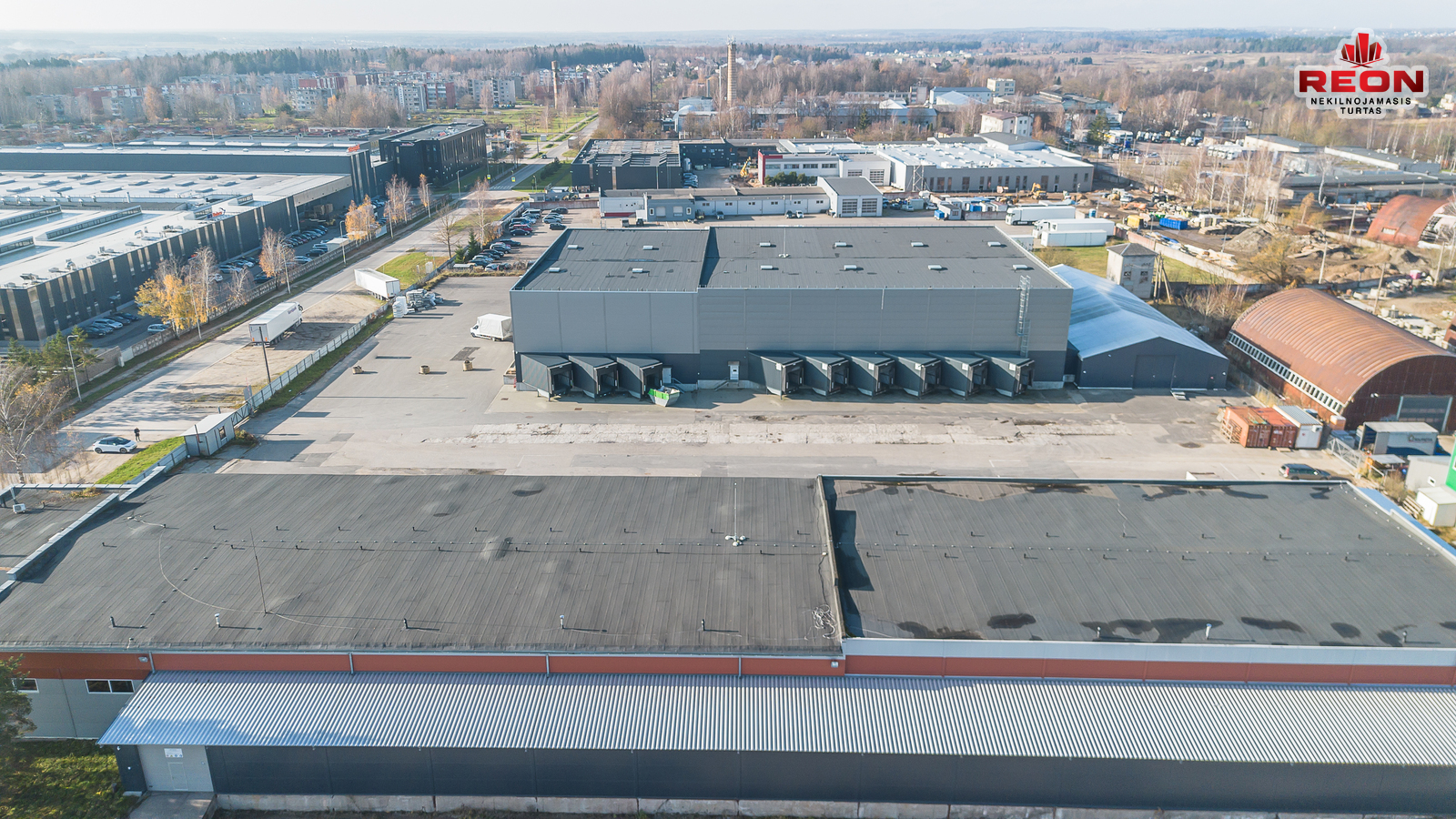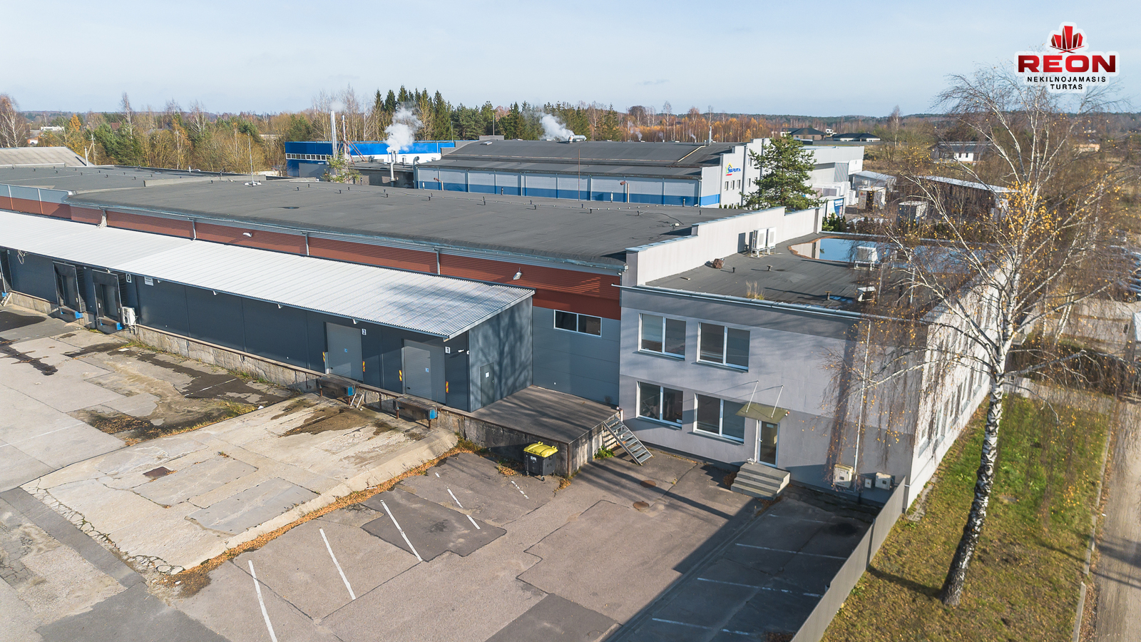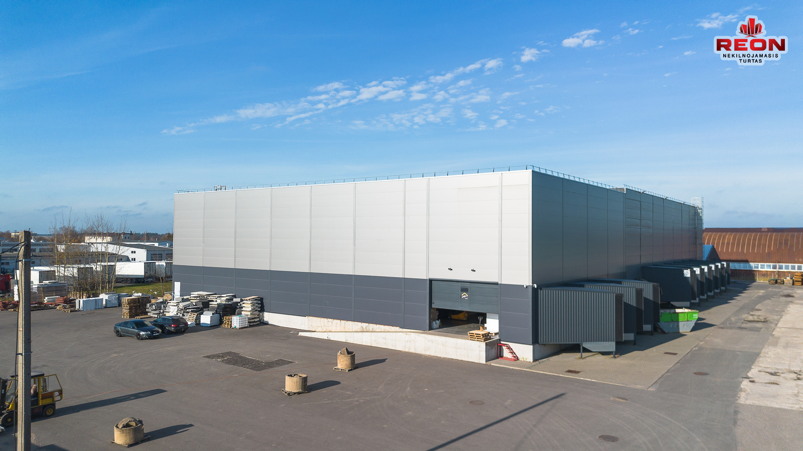 -- Šildomas sandėlis su dengta uždara rampa, bendras plotas – 3288,29 m², uždaros rampos plotas – 1000 m², aukštis – 6,40 m, įrengta vėsinimo/šaldymo patalpa, yra du įvažiavimai, vieta konteineriams ir transportui.