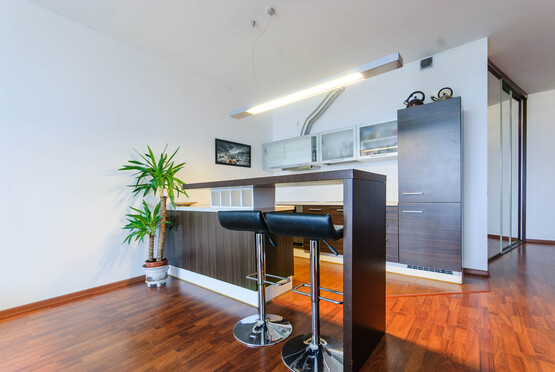 -- Svetainė dalinai atskirta nuo virtuvės