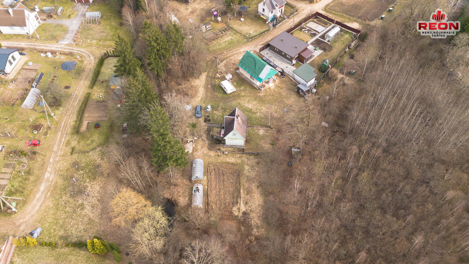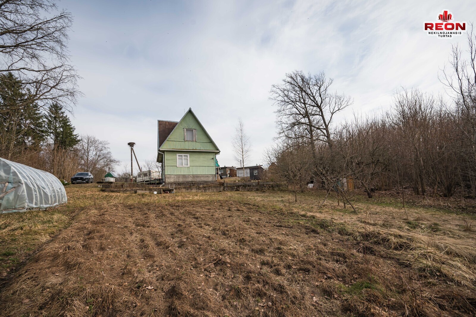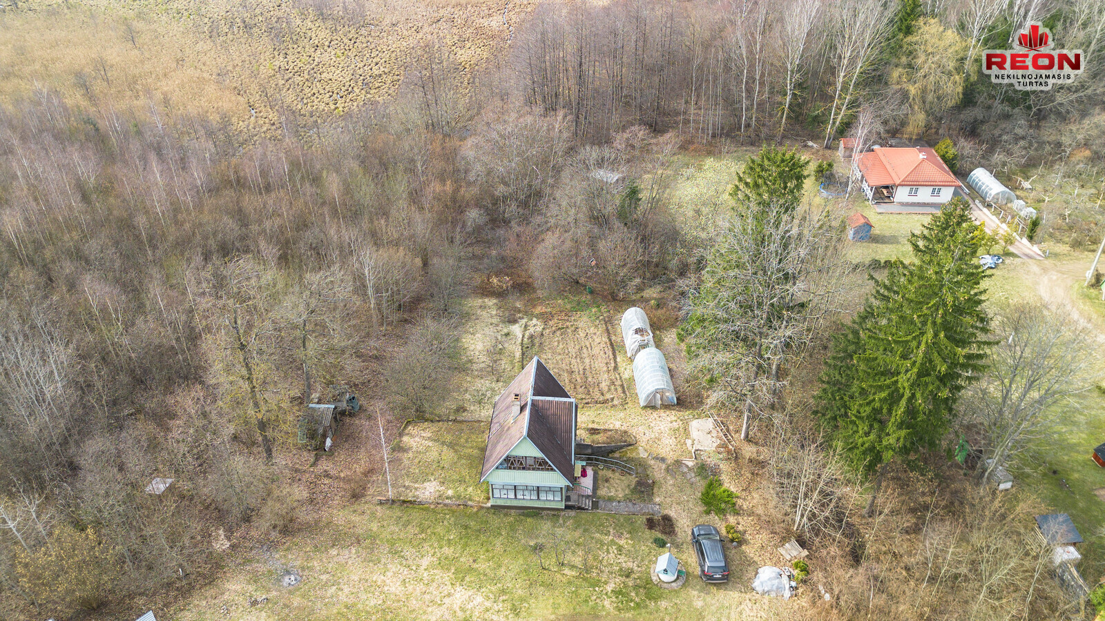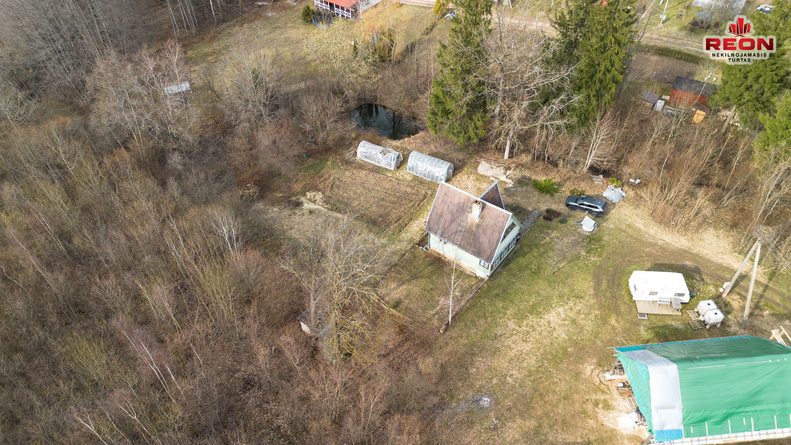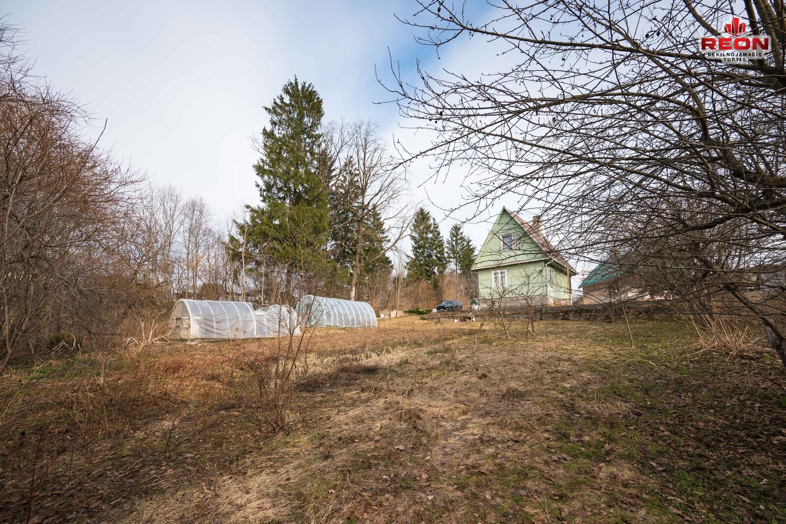 -- Prižiūrėtas sklypas, daugiamečiai medžiai, du šiltnamiai.