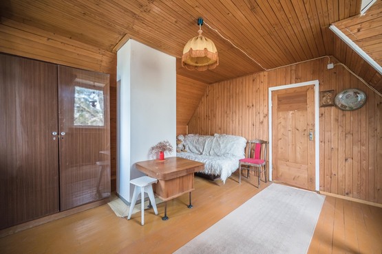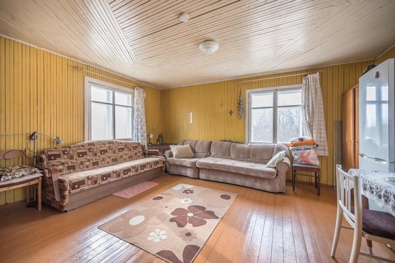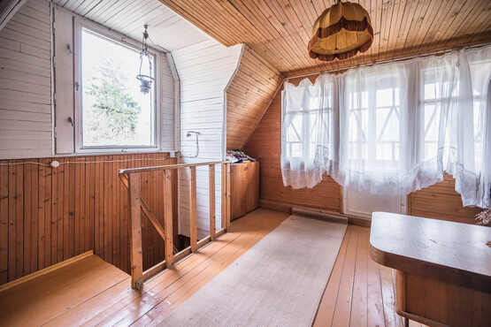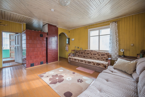 Trys kambariai (vienas pirmame aukšte ir du antrame aukšte). Rūsyje įrengta pirtis, yra garažas. Šulinys, atvestas vanduo į virtuvę ir į pirtį.