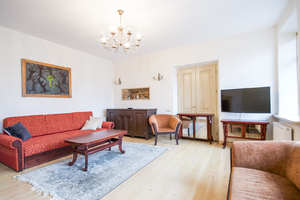 -- Virtuvė su visa reikalinga buitine technika (šaldytuvas, orkaitė, kaitlentė, garų surinkėjas);
