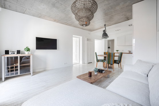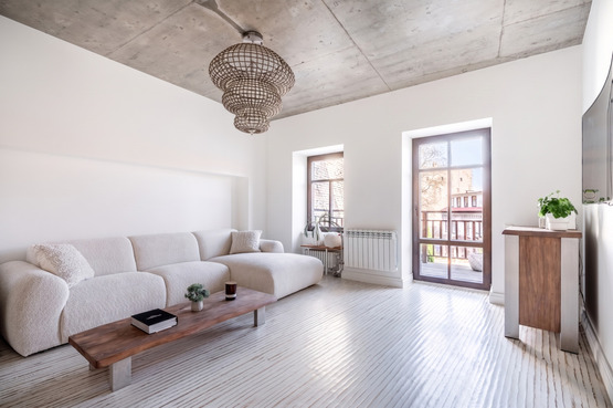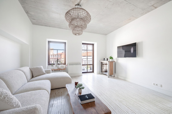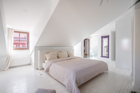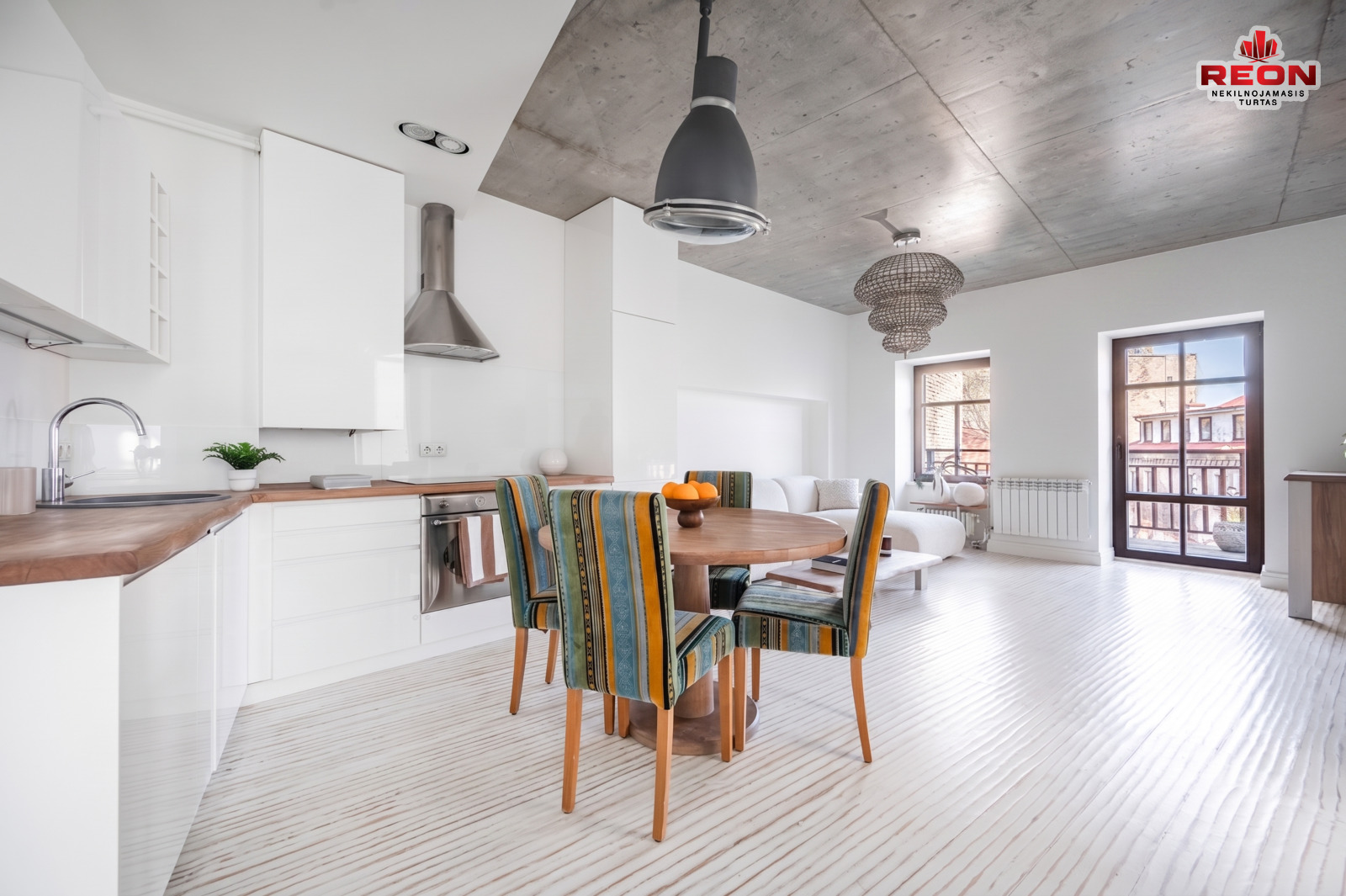 -- Šviesus, jaukus butas su aukštomis lubomis ir dideliais langais;
